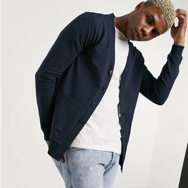 asos ASOS エイソス メンズ ASOS DESIGN ネイビー 編まれた テクスチャ 箱型 ボタン カーディガン 大きいサイズ インポート エクストリームスーパースキニーフィット スウェットパンツ ジーンズ ジーパン 20代 30代 40代 ファッション コーディネート
