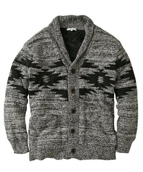 長袖カーディガン メンズ 2L-5L 7GG 裏ボア ブークレオルテガ柄ショールカラー長袖カーディガン 裏ボア仕様であったか 大きいサイズ メンズ ニッセン
