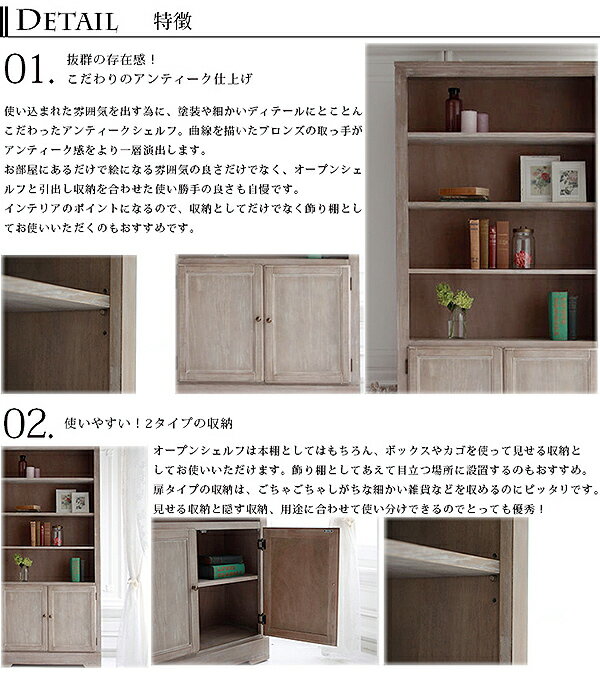 ※こちらの商品の配送区分:【D】 重た〜い家具の開梱・設置や梱包材撤去を丸ごとお任せ!開梱設置をご希望の方はこちら 商品名 シャビーシックシリーズ ブックシェルフ 幅90cm 商品説明 〇アンティーク仕上げにこだわったシャビーシリーズ。
