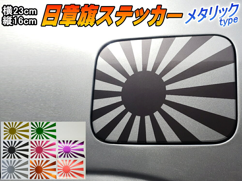 日章旗 ステッカー (大) メタリック黒 【メール便 送料無料】230mm×163mm 旭 カッティング 旭日旗 旧車 ヘルメット 給油口カスタム 車 バイク シール 日本 日の丸 国旗 自転車 軍艦旗 右翼 旧日本海軍 軍旗 朝日 紅白 自衛隊 太陽 防水 耐水 屋外 鏡面 艶 ツヤあり ブラック