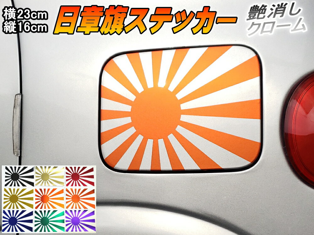 日章旗 ステッカー (大) マットクローム柿 【メール便 送料無料】230mm×163mm 旭 カッティング 旭日旗 旧車 ヘルメット 給油口カスタム 車 バイク シール 日本 日の丸 国旗 自転車 軍艦旗 右翼 旧日本海軍 軍旗 朝日 紅白 自衛隊 太陽 防水 耐水 屋外 ツヤ無し オレンジ