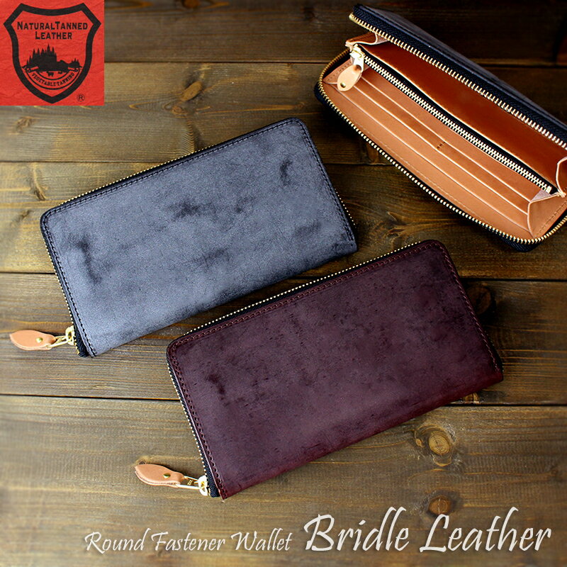 ブライドルレザー × 栃木レザー ラウンドファスナー式 長財布 メンズ レディース シンプル スリム 薄型サイフ