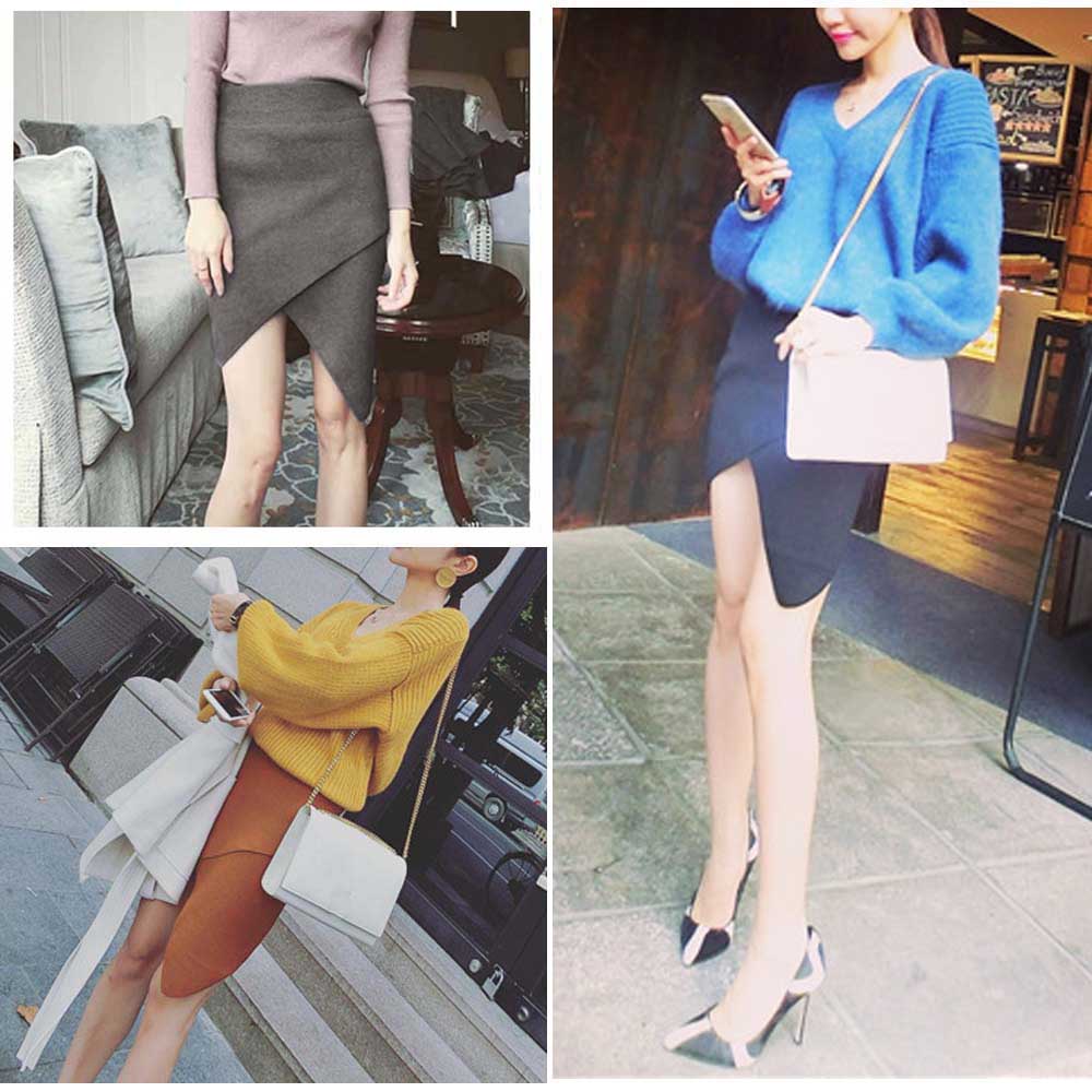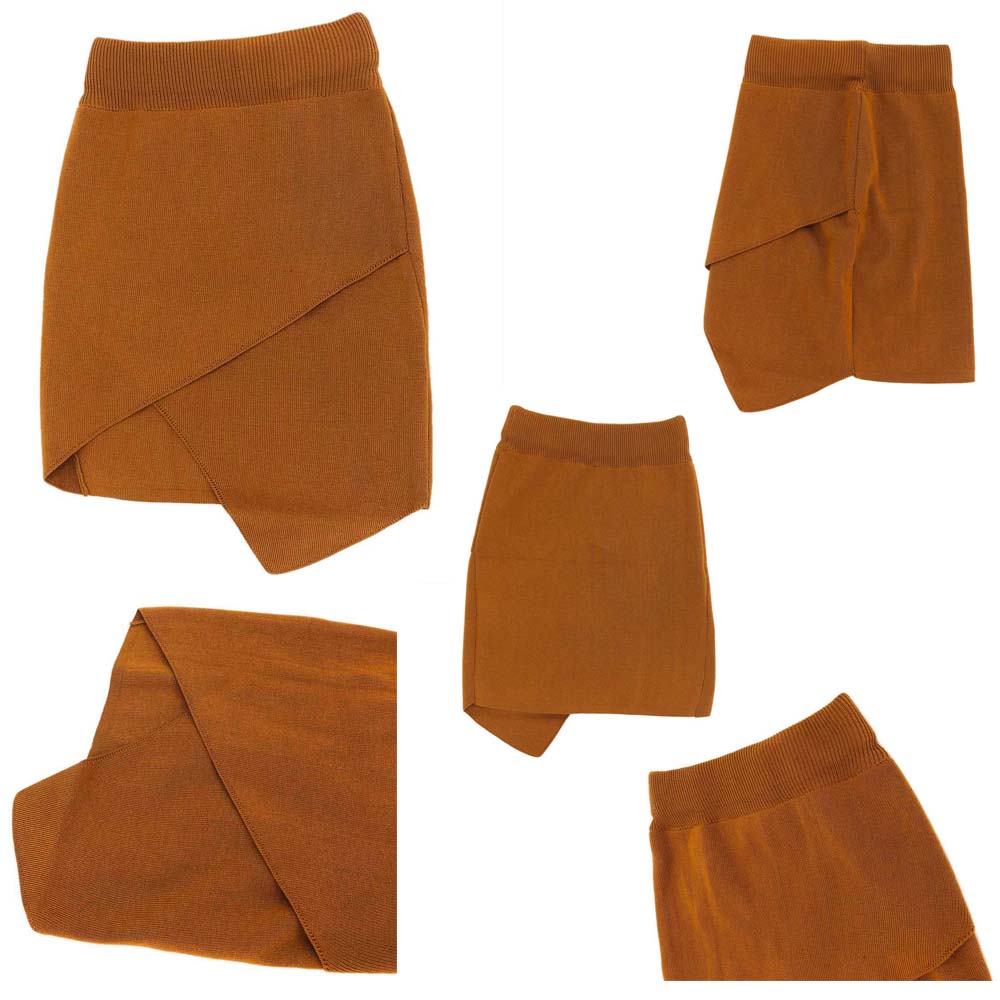 スカート 秋冬/ニットスカート ミニ/ミニスカート 黒 フェミニンながらセクシーな雰囲気のアンバランス丈のラップスカート ハイウエストデザインにアシンメトリー裾のラインで驚きの足長効果 体のラインによくフィットして、窮屈感がなくほのかな女性らしさを最大限に演出 カラー:ブラック/グレー/赤銅色 素材:ポリエステル75%+アクリル25% サイズ:ワンサイズ 着丈:約43cm ウエスト:約56-76cm ヒップ:約72-92cm 裏地:なし 伸縮性:あり 透け感:なし 生産国:中国 すべて平置きサイズです(採寸方法違いより、多少の誤差がございますので、ご了承ください)。