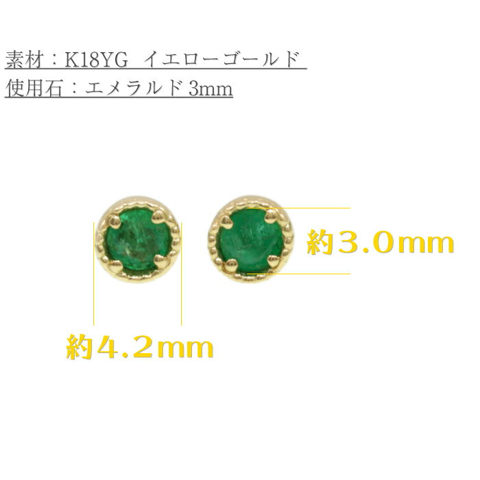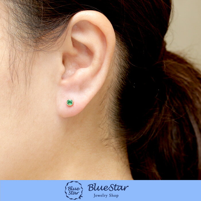 エメラルド スタッドピアス K18YGピアス 5月誕生石 レディース キャッチ付き BlueStar