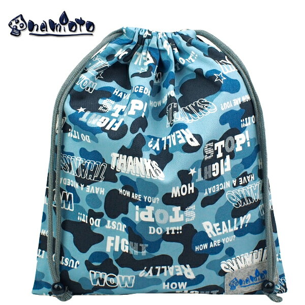 POPカモ ブルー 巾着(大)ハンドメイド namioto 安心 安全 日本製 大きめ ポーチ 体操服袋 体操着入れ お着替え袋 巾着袋 巾着L 給食袋 子供用袋 キッズ巾着 スタンダード 迷彩 ブルー 星 男の子 かわいい おしゃれ 保育園 幼稚園 入園 入学