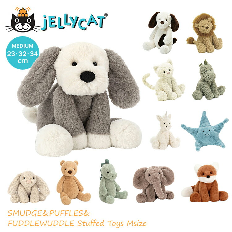 jellycat ぬいぐるみ ジェリーキャット SMUDGE PUFFLES FUDDLEWUDDLE Mサイズ 23cm 32cm 34cm イヌ うさぎ くま 恐竜 ライオン ねこ ユニコーン 出産祝 誕生日 贈り物 プレゼント にも ギフト ラッピング 対応