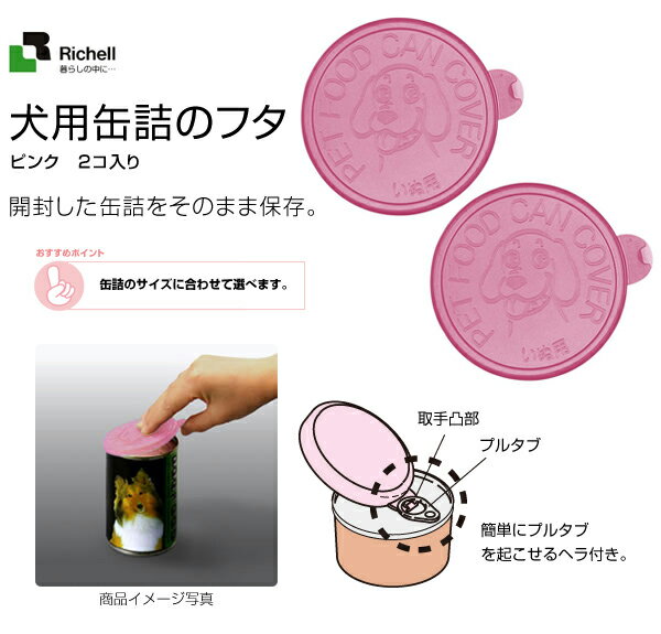 リッチェル 犬用缶詰のフタ ピンク 【フードストッカー/フードクリップ/フタ・蓋/カバー(ドッグフード)】【犬用品/ペット・ペットグッズ/ペット用品】